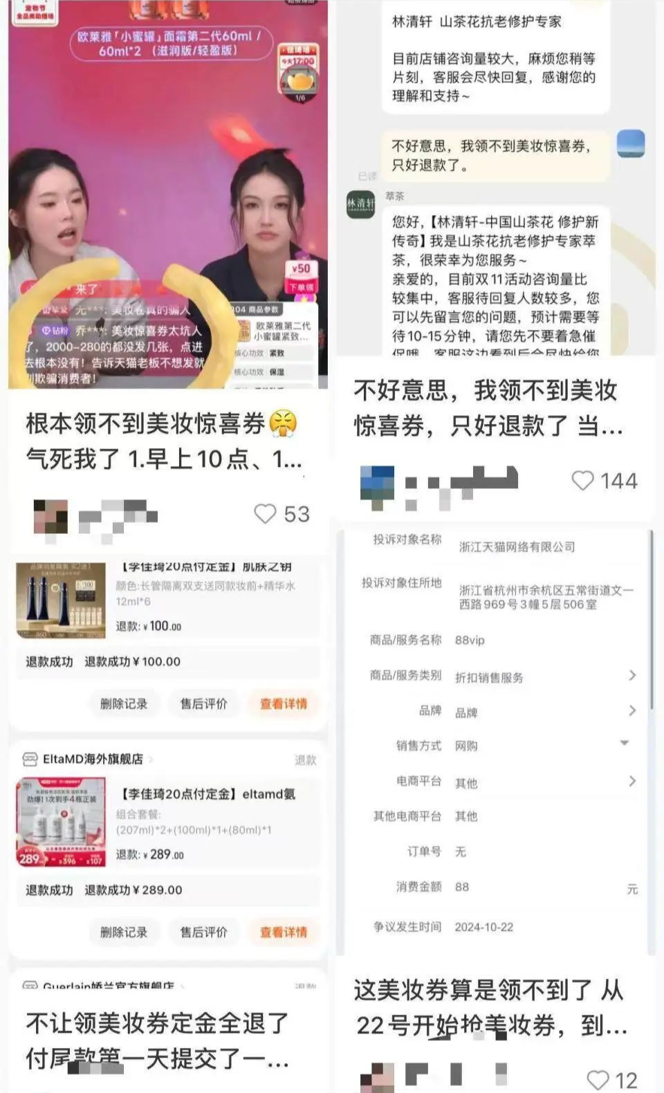 很多消费者因为抢不到天猫双十一美妆惊喜券而无法清算。这也是淘天在商家和消费者之间寻找新平衡带来的新问题。