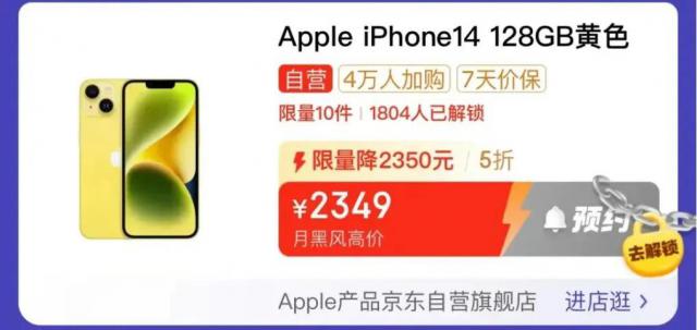 最严重的降价就是老款 iPhone,其中 iPhone14 有些电商平台更是跌到了五折。日前,话题“国产新机上市旧款” iPhone 跌至五折“冲上微博热搜”。经过查看,某电商平台确实存在, iPhone14 128GB 版本售价为 2349 与苹果官网相比,元 4699 人民币的价格相当于五折。对于这一点,网友们纷纷表示意外,称“曾经非常抢手”。