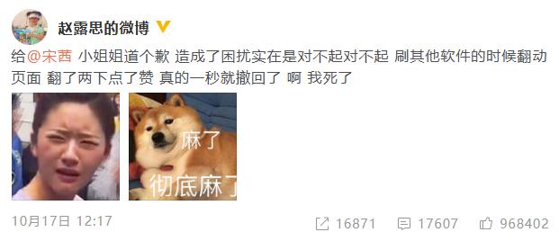 那两年的金鹰节,吵得血淋淋的。赵露思称赞了吐槽宋茜金鹰女神造型的帖子,随后发博道歉说手滑。