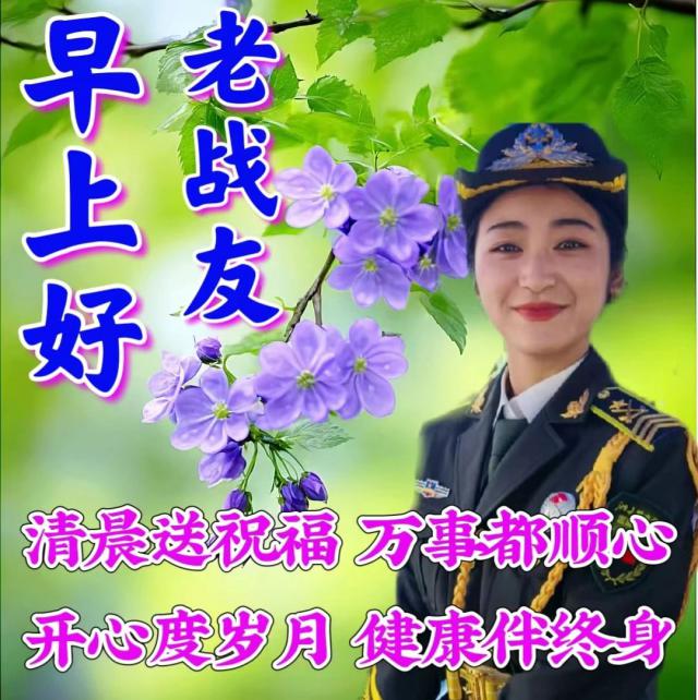 创意老战友早晨好温馨的最新早安祝福图片,天天开心事事顺心。