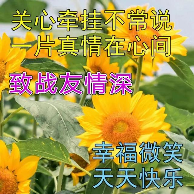 一份善良,永远在心里收藏,一份问候,永远在短信里传递,一份牵挂,永远藏在心里,一份祝福,永远充满温暖;愿我们每天都快乐!战友!天天开心!