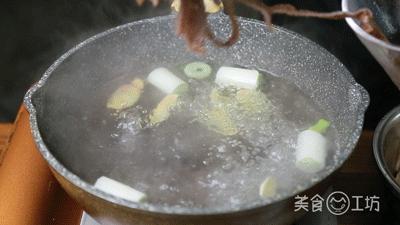 2. 将适量的水放入锅中,加入葱段和姜片煮沸,煮沸后加入鸭血片和百叶丝煮沸。 1 分钟捞出。