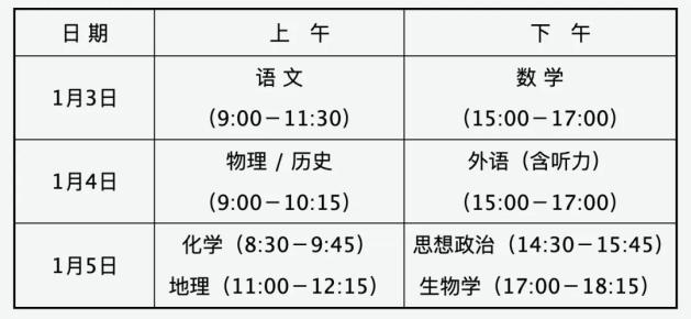 这次适应性演习是针对2025年已经报名参加普通高校招生考试并自愿参加的考生。考试时间为2025年1月3日至5日,共计8门科目。其中,语文考试时间为150分钟,满分为150分;数学和外语(包括听力)考试时间为120分钟,满分为150分,外语听力考试安排在外语笔试开始前进行;选择性考试内容(物理、历史、思想政治、地理、化学、生物)每次考试时间为75分钟,满分为100分。