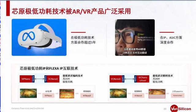 汪洋说:“芯原极低功耗 IP,使图像从摄像机进入,直接到边缘侧进行编码,无需使用。 DDR,解码后送到显示端,也不需要 DDR,被 AR/VR 广泛使用商品。使用芯原 FLEXA ® VIP9000技术 也可以和芯原的图像信号处理器一起使用(ISP)无缝集成视频编码器,实现低延迟。 AI-ISP 和 AI-Video 分割系统,不需要 DDR 内存。"