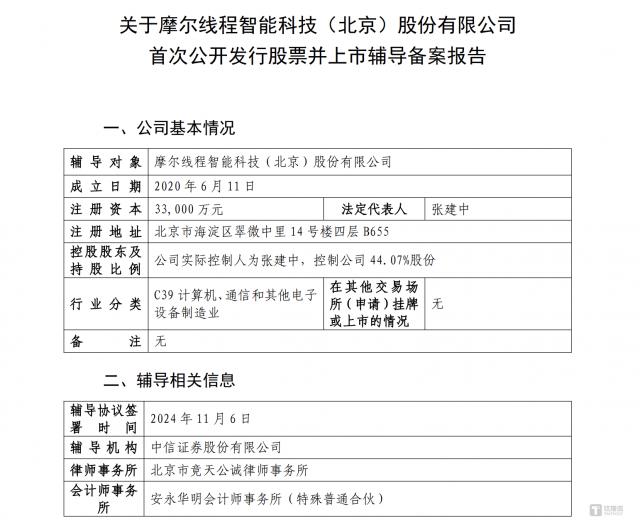 钛媒体 App 11 月 13 日消息,中国证监会官网显示,国内多功能 GPU 独角兽企业摩尔进程智能技术(北京)有限公司(以下简称“摩尔进程”)在北京证监局办理辅导登记,正式启动 A 股票上市过程中,辅导机构为中信证券有限公司。