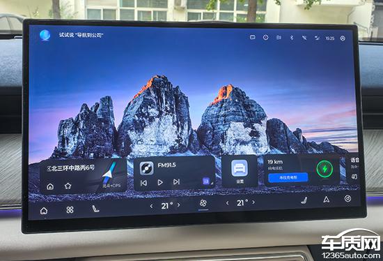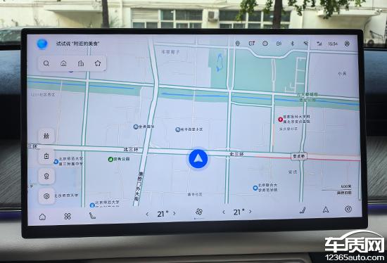 评测车搭载 15.6 英尺悬浮式中控面板,分辨率达到 2.5K,显示效果清晰细致。系统 UI 设计简洁,流畅性能显著,实际测量过程中没有明显的卡屏。10.25 英寸全液晶仪也采用悬浮式设计,显示内容相当丰富。得益于简单的界面布局,虽然整体印象不是很好,但至少不会让人觉得眼花缭乱。