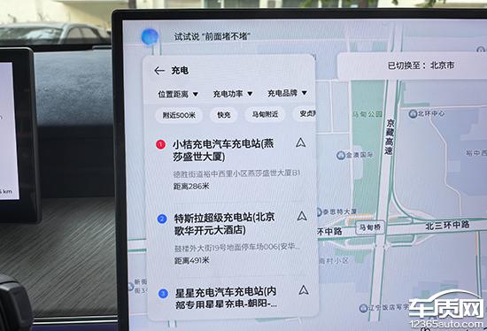 奇瑞风云作为一款插电式混合动力汽车, T9 在导航系统中,还提供了一张充电地图,可以快速找到附近的充电桩。除了常规的位置距离,还可以显示充电功率和充电品牌,方便用户查看和了解。