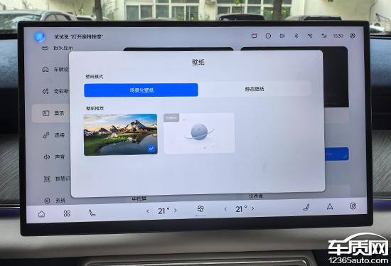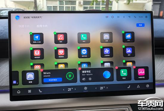 可通过左右滑动快速更换中控屏桌面,图片质量较高,不易出现审美疲劳。屏幕底部配有虚拟卡,分为快捷卡和应用卡。您可以通过长按图标进入设置页面,方便用户根据使用习惯进行设置。 DIY。这个部分的设计非常巧妙,充分利用了屏幕尺寸,功能显示清晰,交互感觉相当出色。另外,点击屏幕空白也可以隐藏卡片,这样屏幕就可以显示出纯净的照片桌面,显得更加清新简洁。