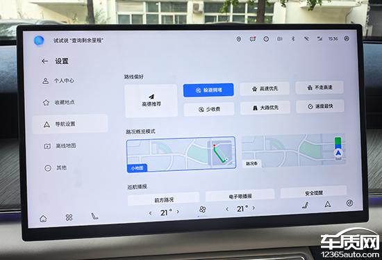 在导航设置中,路线偏好提供多种选择,几乎所有常规功能和设置都提供,日常使用非常方便。遗憾的是,除了详细或简单的语音提示外,它没有提供语音包选择,在个性化方面还有优化的空间。