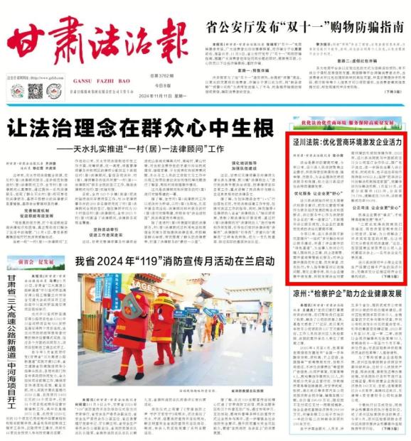 甘肃法治报 | 泾川法院:优化经营环境,激发企业活力
