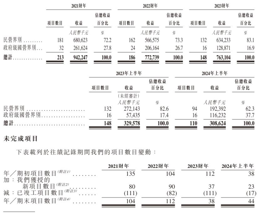 公司承接的工程项目以民营界别项目为主,2023年民营界别项目带来的营收占比达83.1%,政府级国营界别项目带来的营收占比为16.9%。