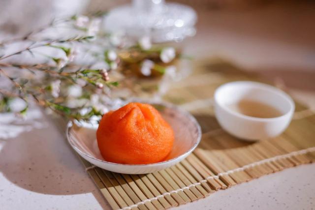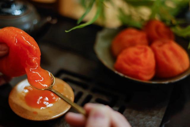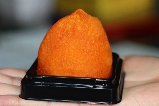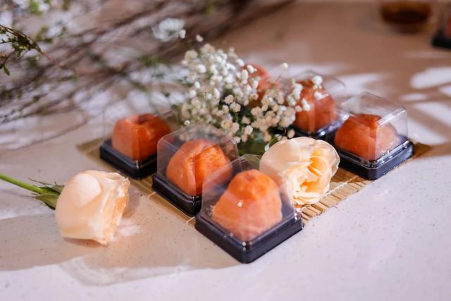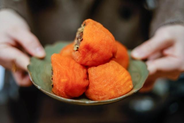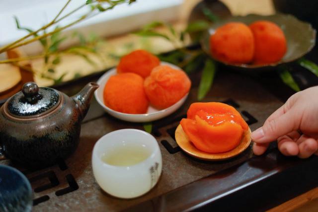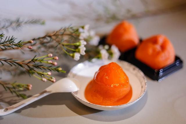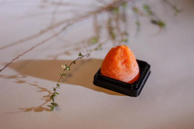 这种水果“冰淇淋”可以抓在手上吃,淡化了新鲜柿子的涩味,不会太甜腻,一口一口地享受醇厚的味道,充满糖流心,果实晶莹剔透,Q 弹得像果冻一样。