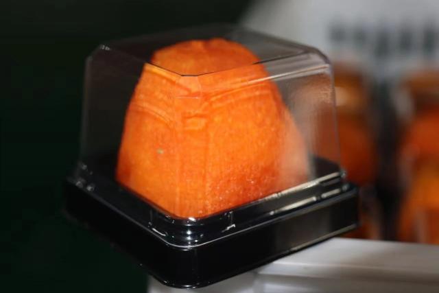 因此,当富平流心冰柿出现,同时具有鲜柿和柿饼的特点,既有新鲜柿子的柔软,又有柿饼的韧性,果实匀称又流心,透润软糯有蜜香。