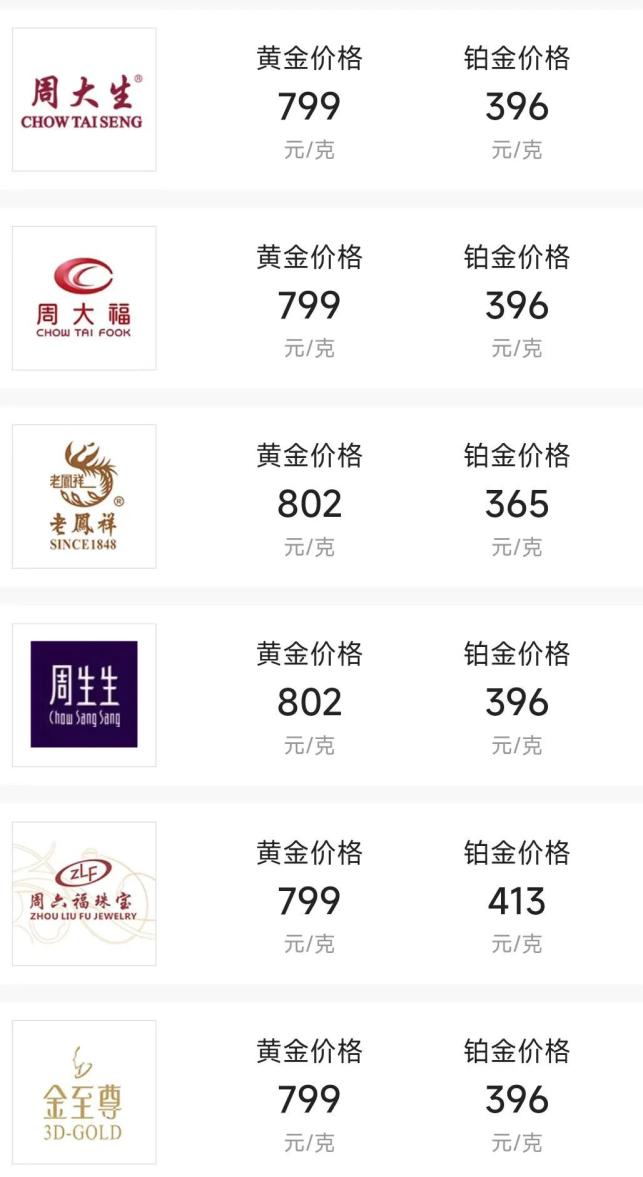 十一月十二日,周大福(01929.HK)谢瑞麟(004177)零售金价格为799元/克。.HK)周生生(001166)足金饰品价格799元/克。.HK)足金首饰价格802元/克,周六福足金价格799元/克。