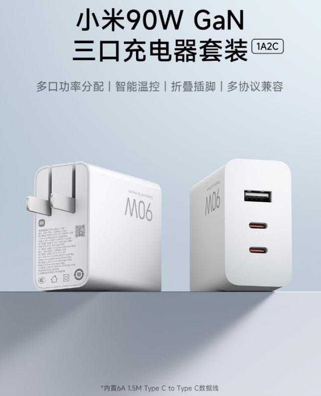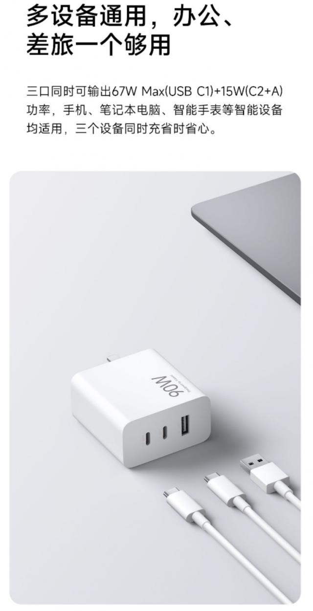 小米推出 90W GaN 三口充电器套的价格 199 元