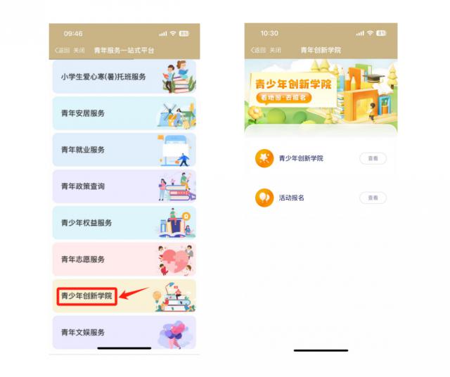 青年创新学院:通过地图查找最近的创新学院,服务项目,运营时间。了解活动计划,并且可以预约参加。