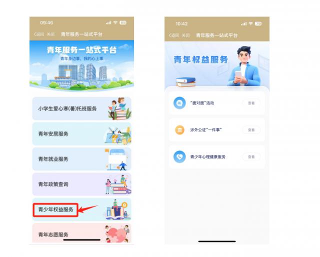 青年权益服务:为青少年提供心理健康咨询,帮助青少年应对成长过程中的心理困扰。提供网上申请涉外公证材料,帮助青少年完成各种申请,享受足不出户的便捷服务。