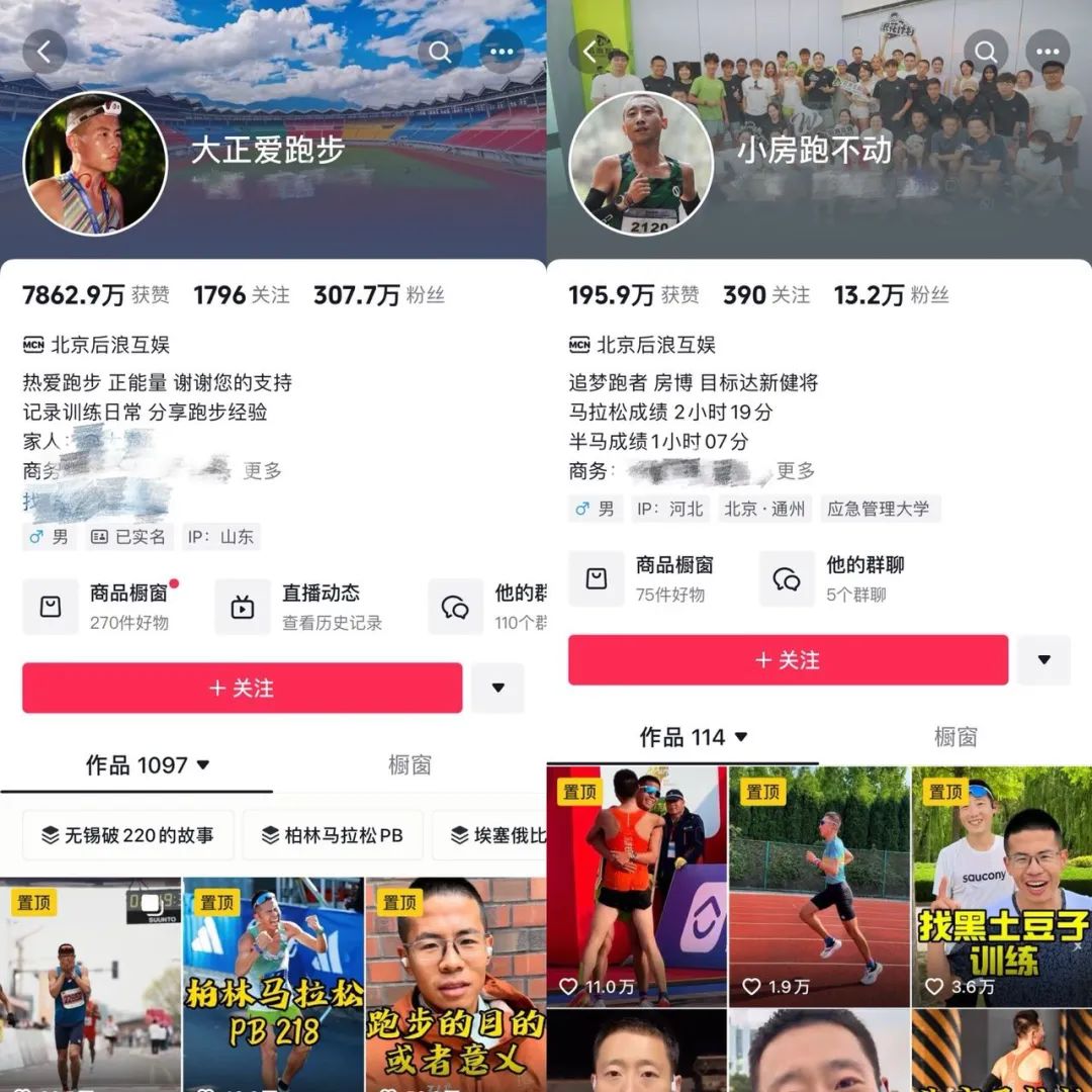 图片:“大正爱跑”(左)和“小房子跑不动”(右)账户,来源:抖音 听筒Tech截图