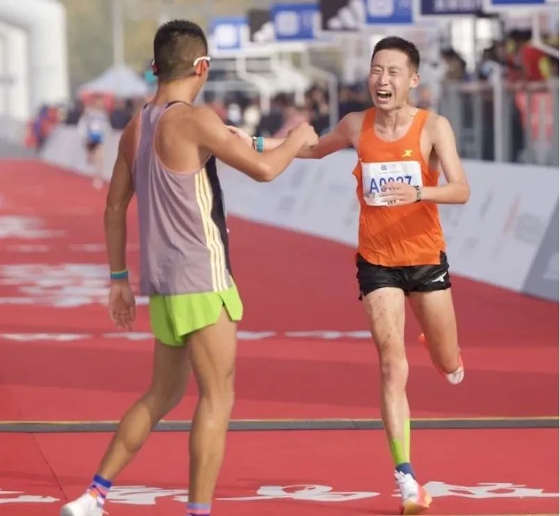 图片:@小房子跑不动(右)在2024年北京马拉松跑道上,来源:@小房子跑不动(右) 供图