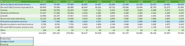 由于微软继续大力投资数据中心业务,公司各部门都在不断增长。管理人员预测,生产力和智能云将继续保持强劲势头。对这两个部门来说,我预测增长率是多少? 12% 和 20.5%。这将使微软 2025 第二季度总收入达到 690 亿美金。对整个 2025 在财年,预计总收入将达到 2780 亿美元,稀释每股收益为亿美元 13.43 美金。
