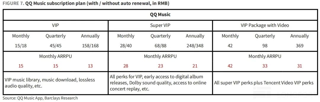 由于社交娱乐的压力,虽然宏观环境不好,但腾讯音乐不断推进付费墙策略,提前释放数字音乐付费的增长潜力。另一方面,腾讯视频被绑定,通过增加更多的权益服务(首发数字专辑、杜比音效、在线演唱会和 VIP 等等),实现付费用户到达付费用户 SVIP 顾客转换。