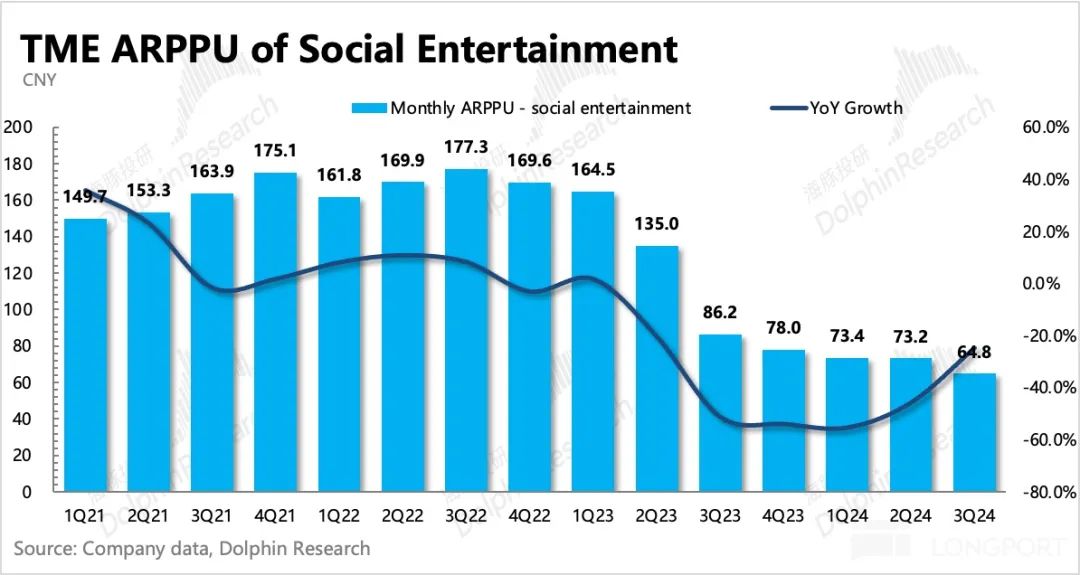 北京时间 11 月 13 腾讯音乐在日港股盘之后发布。 2024 2008年第三季度财务报告。上季度,由于短期用户数量的引导,市场开始质疑腾讯音乐的增长,尤其是中长期增长。如果只依靠人均支付,在当今国内消费环境下的可持续性问题。