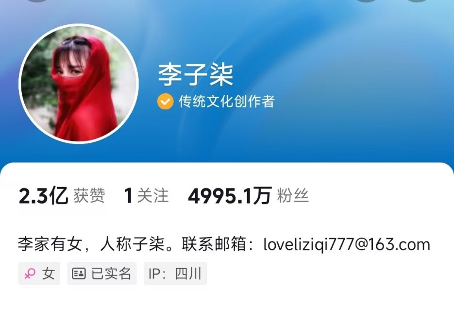 值得注意的是,根据天眼查数据,子柒文化的法人已由李佳佳调整为李子柒,PConline发现,包括抖音、微博等平台的实名认证信息,都显示为李子柒。