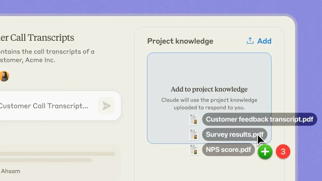 比如,Claude 提供了 Project 功能。您可以将获得的文档上传到 Project 中,AI 根据这些文件自动进行学习,提供更精确的解决方案。
