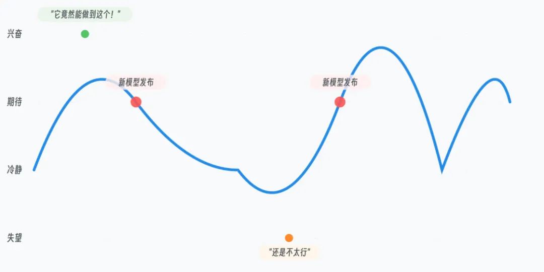 AI 发展观察者的情绪周期(由 Claude 绘制)
