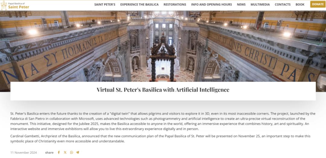 网站显示,AI服务的具体计划将于2024年11月25日发布。考虑到2025年正式启动,虚拟大教堂应该在此之前上线。