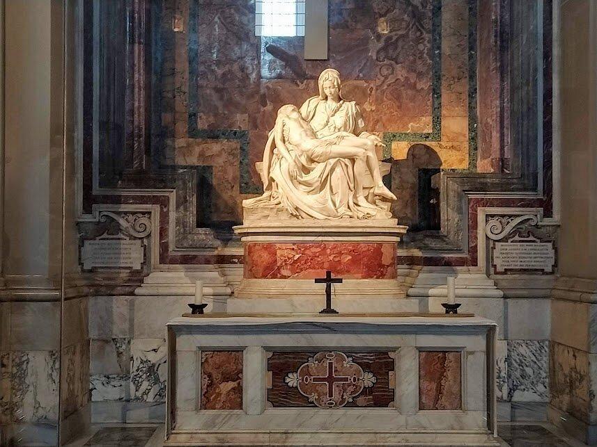 另外一个是《圣人》( Pietà )。米开朗琪罗年仅 24 岁月创造的雕塑,被称为最美的圣母雕像。