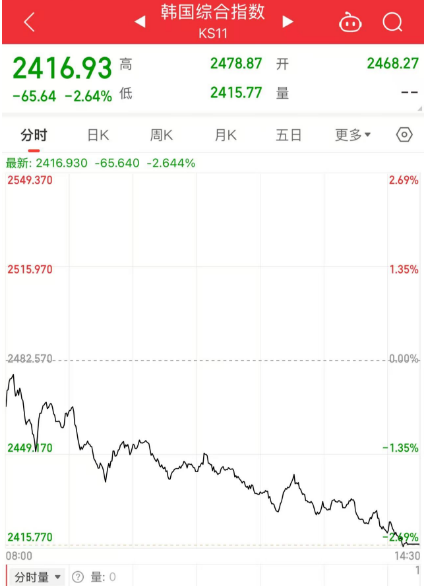 韩国股市暴跌,成为亚洲表现最差的市场。