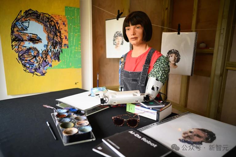 在2022年的英国Glastonbury音乐会上,一位机器人艺术家为表演者画画。