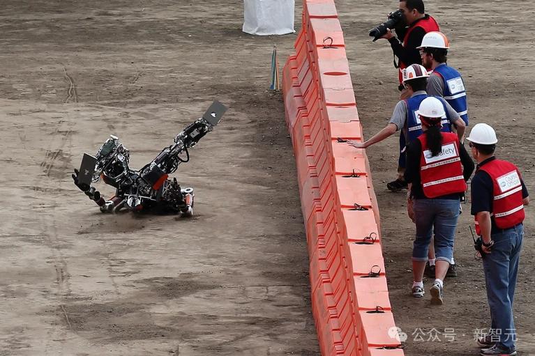 一个人形机器人在加州举行的机器人挑战赛中后退