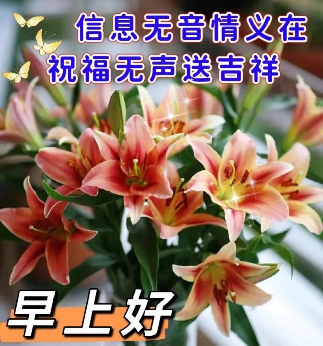 早上,当晨光舞动着她柔软的翅膀,轻轻唤起你的梦想,一丝清新的空气,一缕带给你快乐的阳光,闻着鲜花迎接晨光,身心健康快乐。问候在风中传播千里,祝愿鸟儿送到成千上万的家庭。早上好,吉祥!