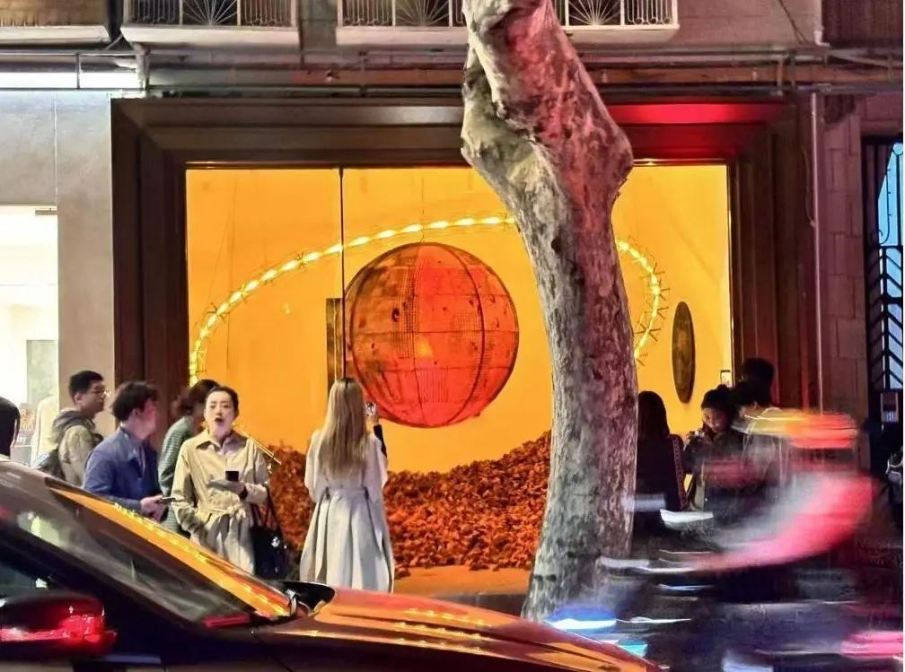 巧合的是,在距离不到100米的南昌路312号,空间中悬挂着一个红色的大球,周围环绕着环形灯带,就像一个神秘的星球来到这个世界,吸引了无数好奇的路人拍照打卡。南昌路似乎悄然发生了翻天覆地的变化。各种各样的艺术展如雨后春笋般涌现,吸引了越来越多的年轻人,使得这个街区充满了前所未有的活力和浓厚的艺术氛围。