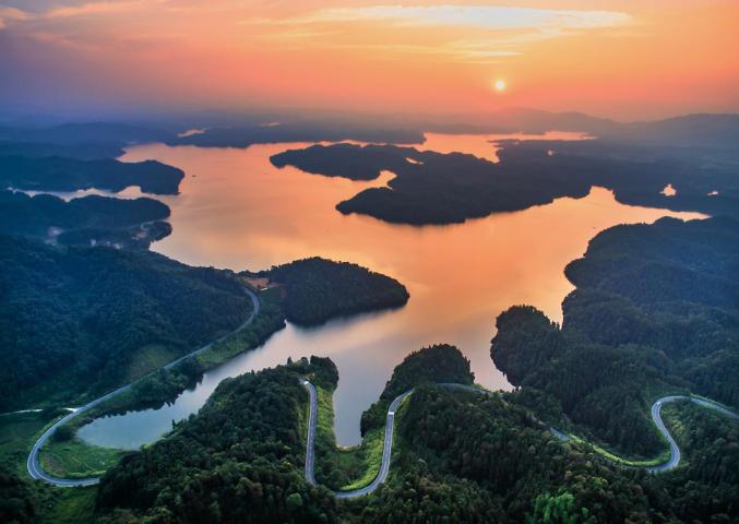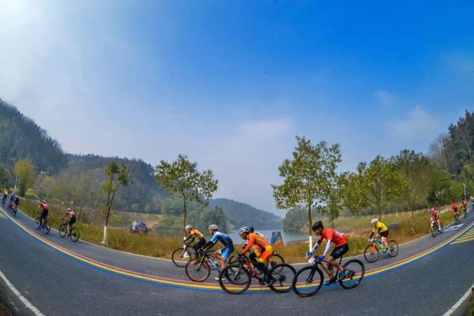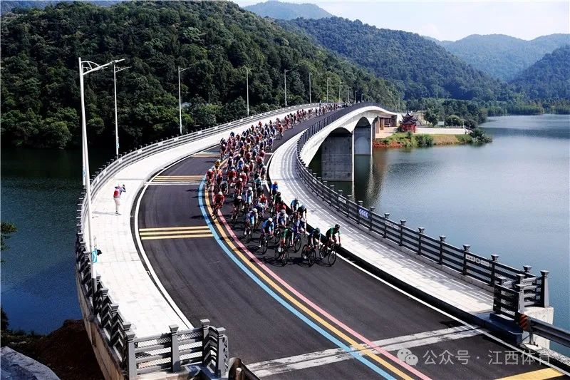 图为环鄱阳湖国际自行车大赛新余仙女湖站。