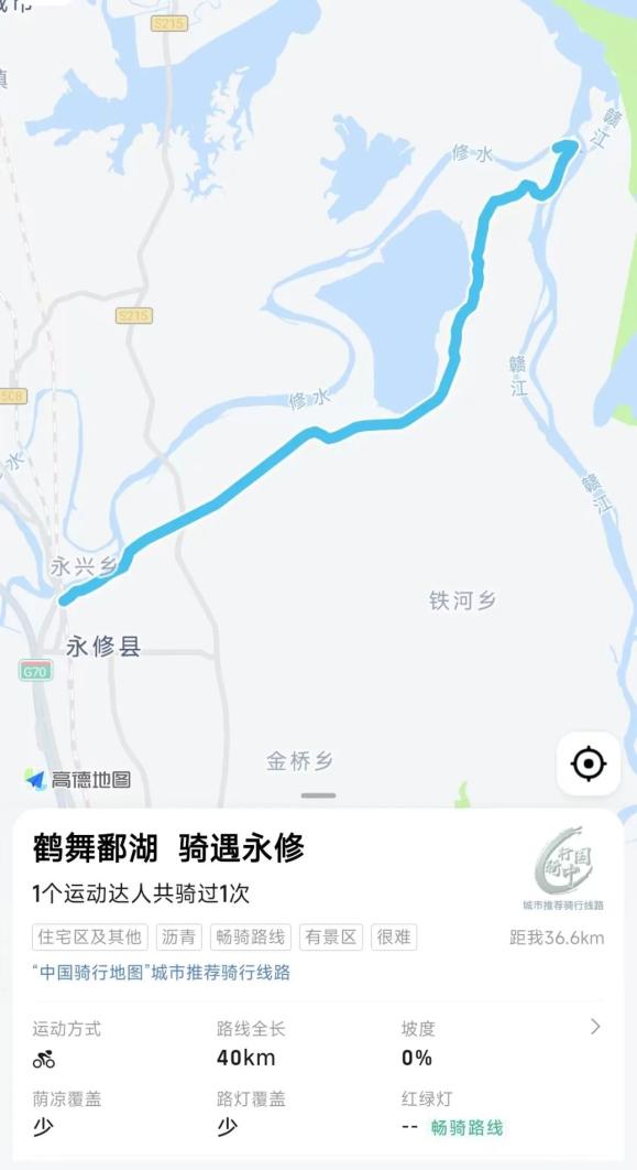 “鹤舞鄱湖,骑遇永修” 路线全程40公里,
