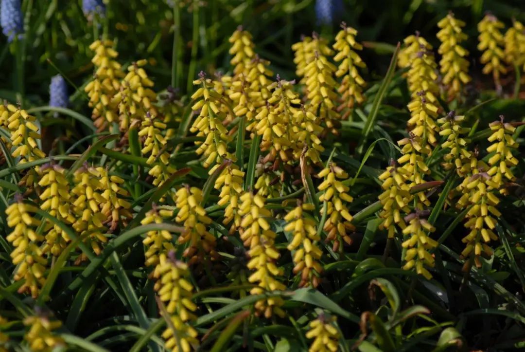 与风信子不同,葡萄风信子复花非常容易,株型小,更适合盆栽。种类也很多。除了常见的蓝色系统,你还可以尝试“日出”(粉色)、"金香"(黄)、葡萄冰(复色)、罕见的类型,如“羽毛”(特殊花型)。