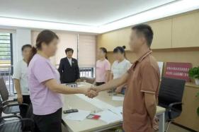 图为在宝安区法院调解室,“金花”代表与厂主达成协议,握手言和。黄少炜 摄