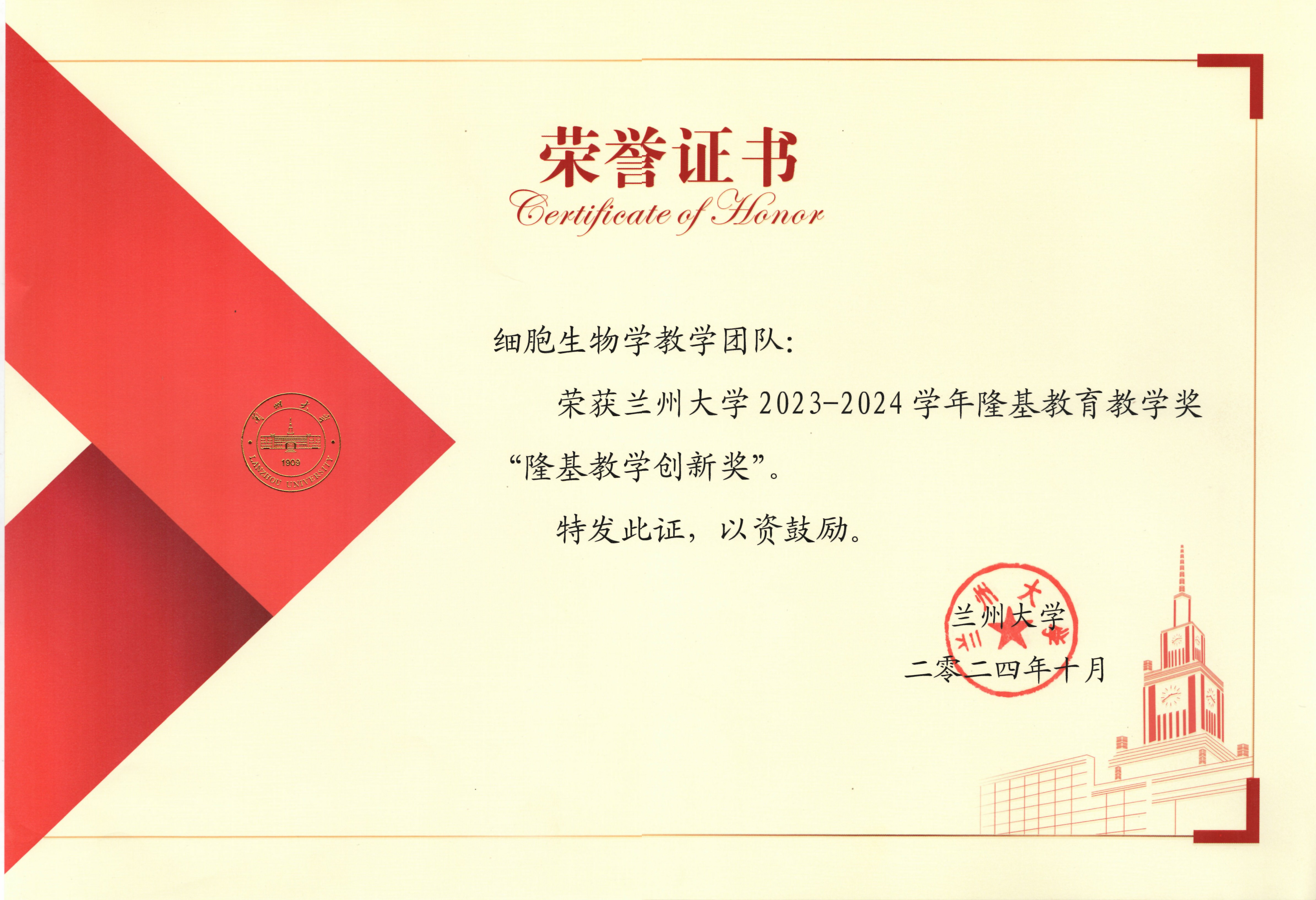 作为中国细胞生物学专业的起点,兰州大学40多年来出版了3本细胞生物学理论教材和4本实验教材,为中国细胞生物学领域的本科教学和人才培养做出了巨大贡献。2005年,细胞生物学课程被选为“甘肃省精品课程”,细胞生物学试验获甘肃省教学成果奖;2022年甘肃省一流课程入选,2023年全国一流本科课程入选。