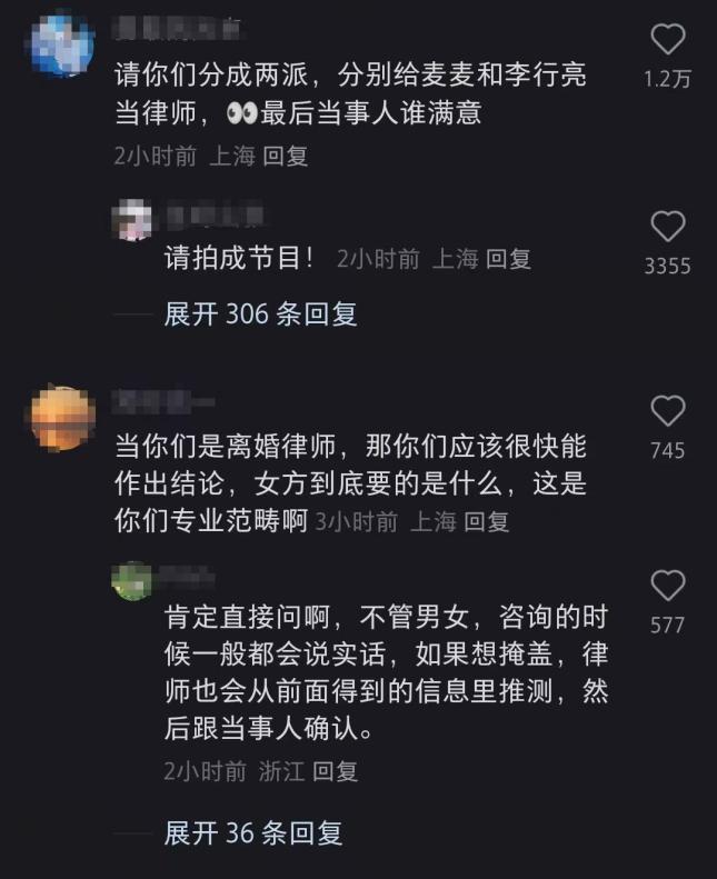 还有网友建议,在评论区,律师分为两组,各自从麦琳和李行亮的角度进行分析。