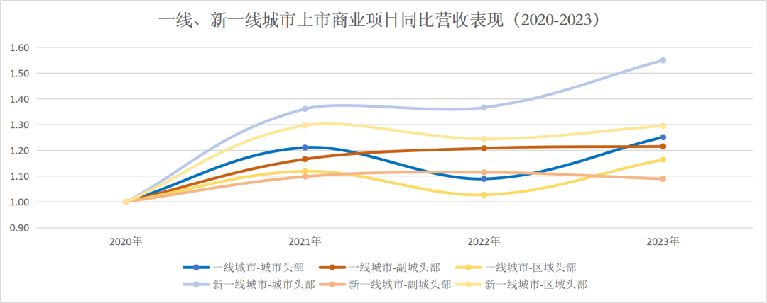 城市头部项目增长最为明显,但新一线增长率高于一线;