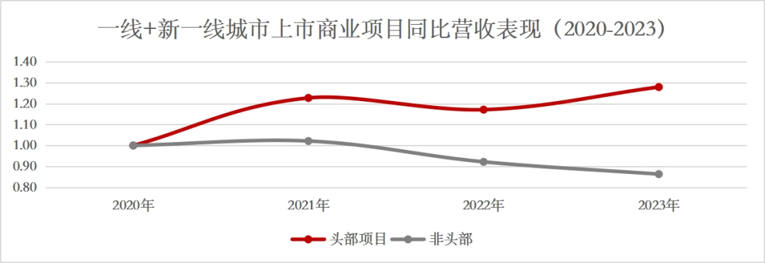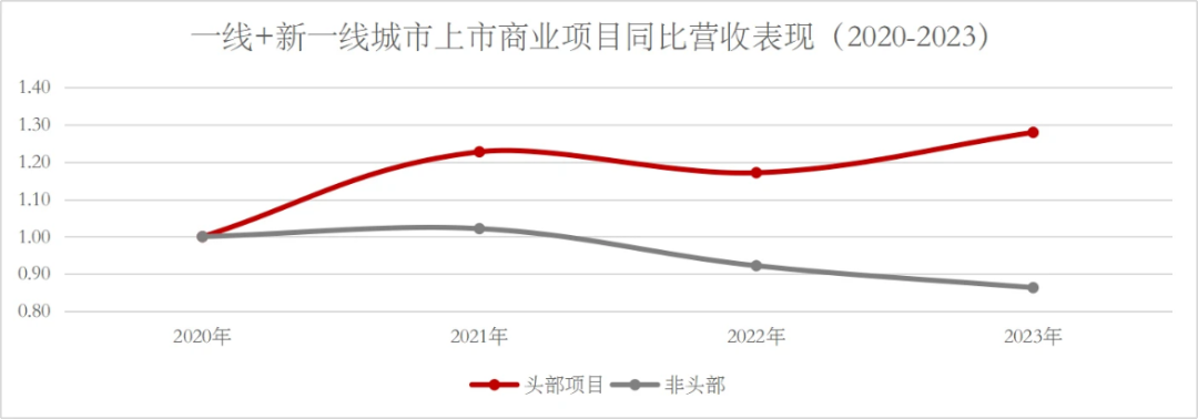 购物中心马太效应明显,头部项目比非头部项目更强;