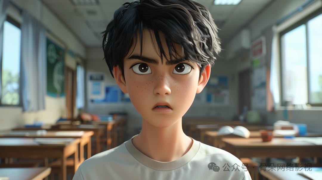 比如这张14岁“坏人”男学生的照片,西羊石团队采用的提示是先描述动画风格,再描述男生的细节,最后描述他的表情:“Chinese anime style,10 years old,full body photo, short hair, inch long, in the classroom, a modern Chinese male student, rebellious and fierce.”