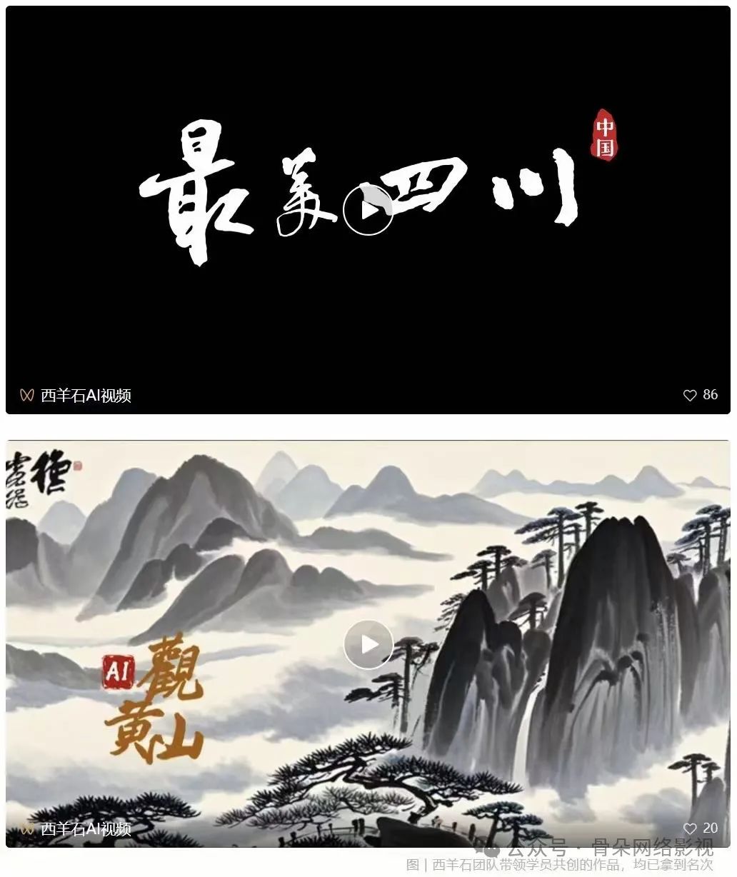起初,西羊石团队发布了一些AI视频作品(文化旅游广告、儿童寓言等。)在视频号上吸粉。几个月后,他们创建了一个拥有数万粉丝的IP账户。在此期间,一些敢于早期采用者的企业向他们投掷了橄榄叶。他们逐渐开辟了第一条盈利的商业路径,那就是制作to B、G端广告,文旅片。