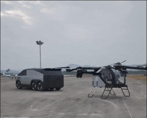 目前,航行舱的最大起飞重量为550公斤,最大航程为30公里。当它飞到目的地上空时,周围的共享底盘已经到位,协助航行舱准确对接和着陆。整体配合设计非常紧密。