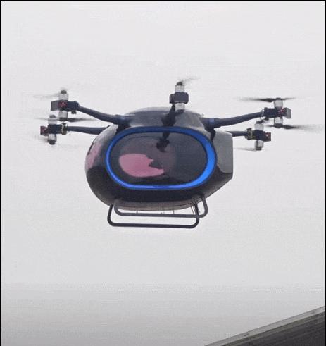 其中,飞行体设计成电动六轴六桨的飞机,采用碳纤维材料作为机身主体结构和浆叶的制造材料,既保证了强度,又实现了轻量化,同时配备了270。°全景式驾驶舱,航行视野非常广阔。