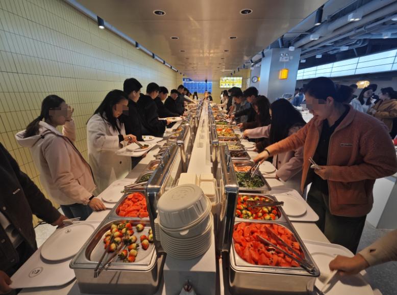 据媒体报道,餐厅的布局分为三个主要区域:小菜区,以小碗菜为主,分量专门精致,营养丰富的家常菜;称重自选菜区也是食堂最受欢迎的区域。肉和蔬菜价格相同,晚餐也是一样的。汤粥是免费供应的,还有风味特色的小吃摊,包括驴肉烧、坡子街米粉、炒河粉、红烧肉饭、拌面等地方特色小吃。