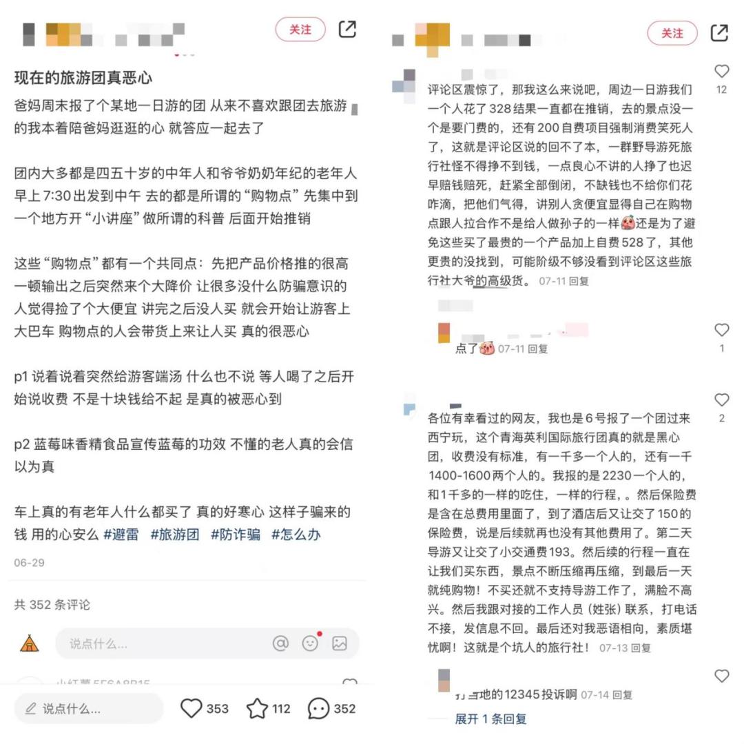 在网上分享了自己的精彩经历后,冯琪也看到了很多类似的吐槽:“我参加了一个35岁以上的老年团。我看起来不像他们一开始不允许我进去。我只是坐在最后。这个群体让我看到了什么是有效销售。一开始是免费赠品,后面是5元、10元、50元、100元...看到我不买,我旁边的阿姨给了我10元。让我以我的名义给她买,她觉得值得。”“我陪姨妈去了两天低价旅游团,听了同样的讲座,卖了同样的货。我们收紧了口袋,没有买,但是我同行的一个叔叔花了1200元只得到了一个锅……”